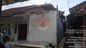 Rumah permanen tersebut milik HG(63 tahun), dihuni oleh dua kepala keluarga dengan total tujuh jiwa. Berdasarkan hasil kaji cepat BPBD Kabupaten Kuningan, bagian atap samping depan rumah berukuran 4 x 8 meter ambruk, dan menyebabkan plafon dua kamar tidur di bawahnya jebol tertimpa material bangunan.