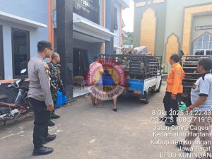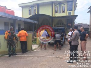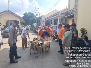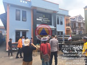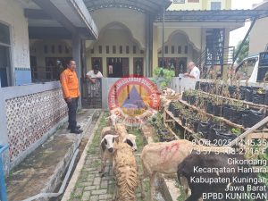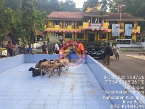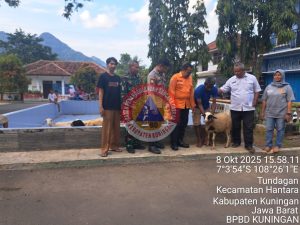 KUNINGAN – Dalam rangka mendukung ketahanan ekonomi masyarakat serta penguatan program pemberdayaan pascabencana, BPBD Kabupaten Kuningan bersama unsur TNI, POLRI, dan Pemerintah Kecamatan Hantara melaksanakan kegiatan pendampingan distribusi bantuan hewan ternak berupa kambing, pada Rabu (8/10/2025).